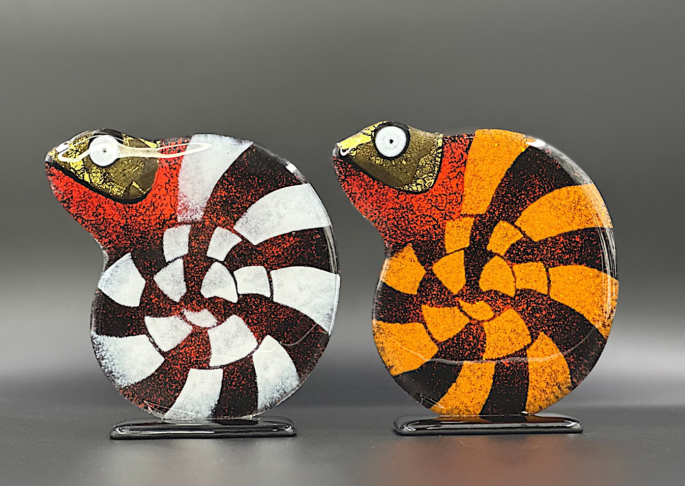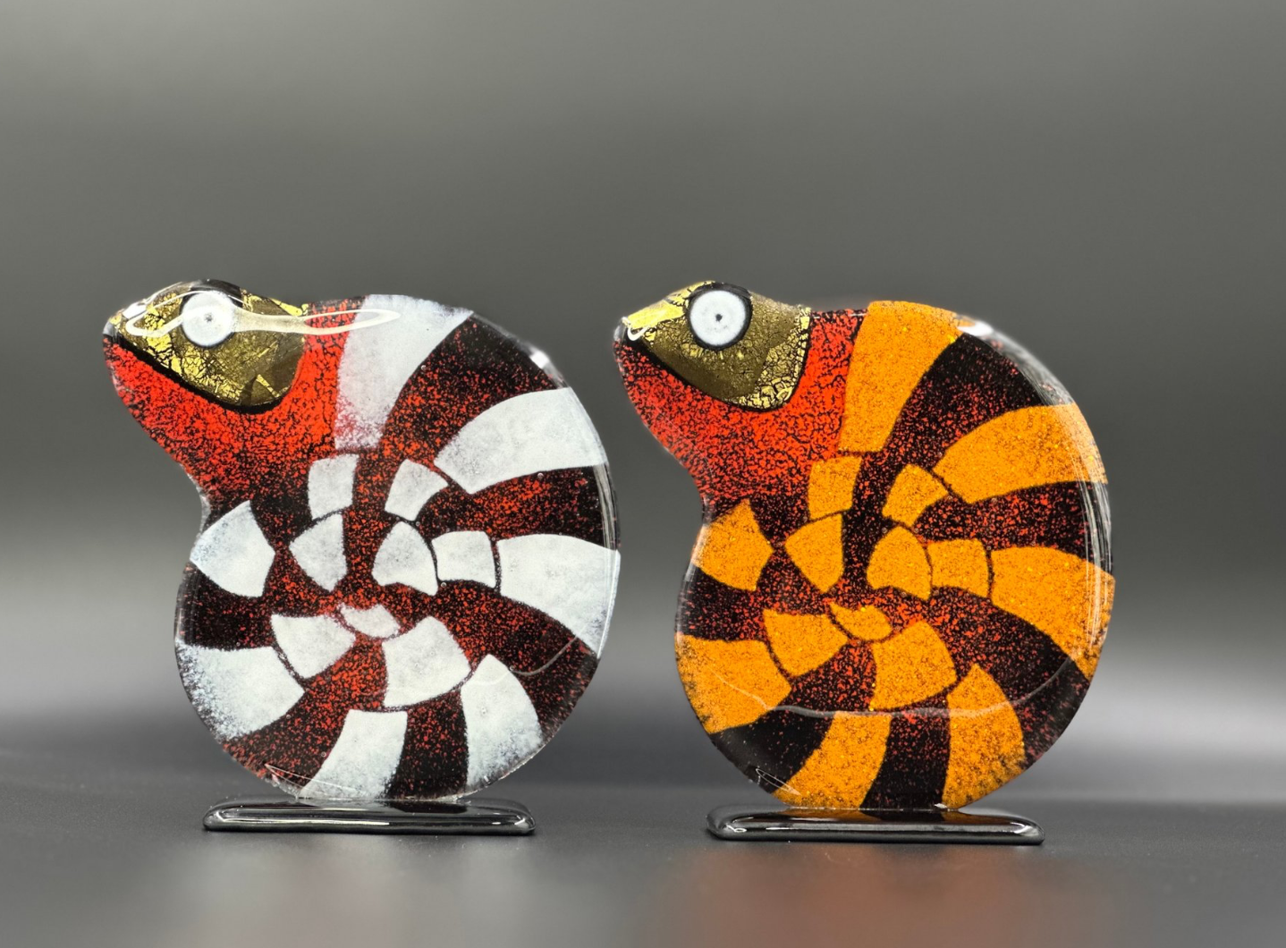 Unicum! Set van 2 Kameleons op voet, 2025